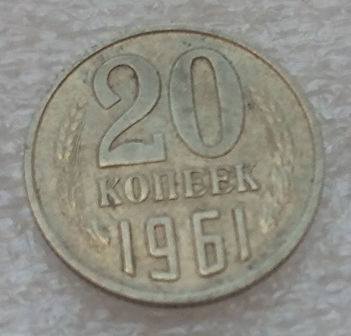 1961 RU 20 Kopeks USSR Soviet Union Russian Coin Coat of Arms Very Good Details