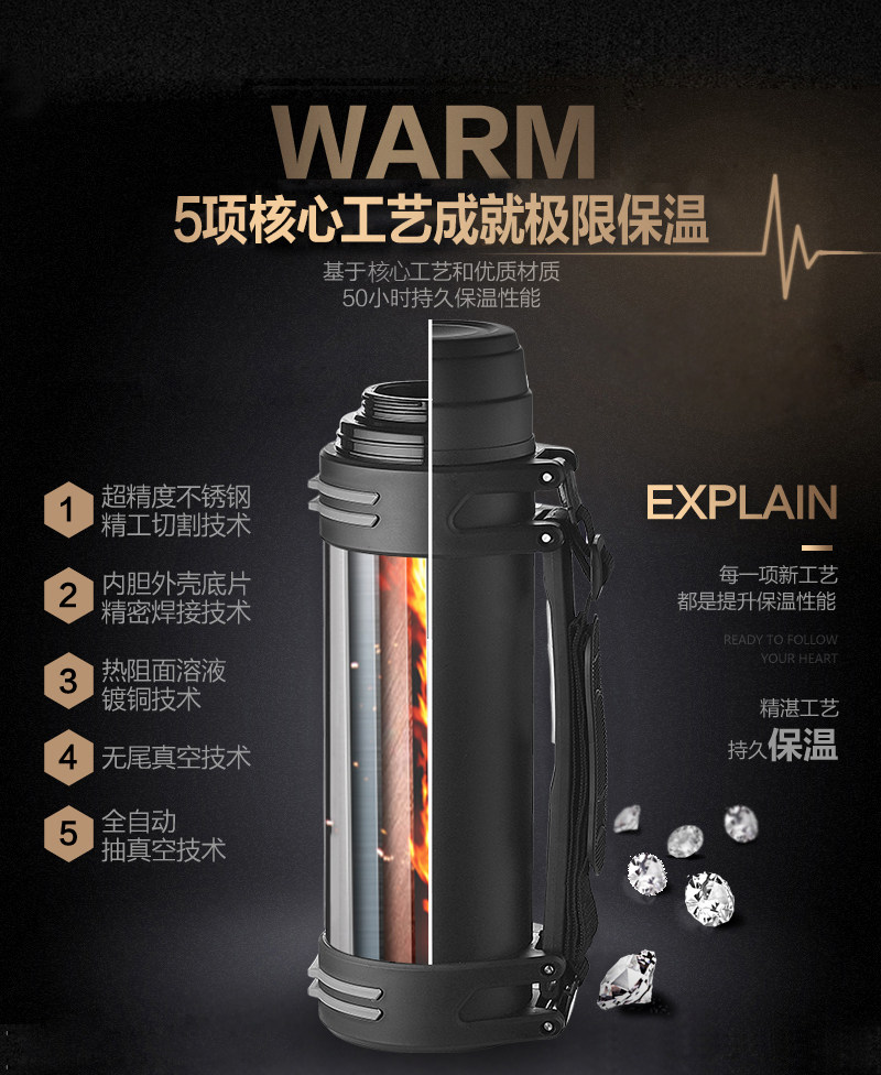 Stainless steel insulation pot household insulation Cup male warm bottle outdoor large capacity car travel water bottle 2.2L, we have real limit of the insulation performance, 60 hours to enjoy the temperature