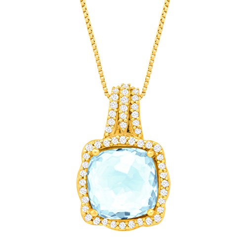 -. Feature : 1 7/8 ct Aquamarine & 1/6 ct Diamonds / Color I-J, Clarity I2 / 14K Gold / Measures 5/8 by 7/16 Inches / 18-Inch Box Chain