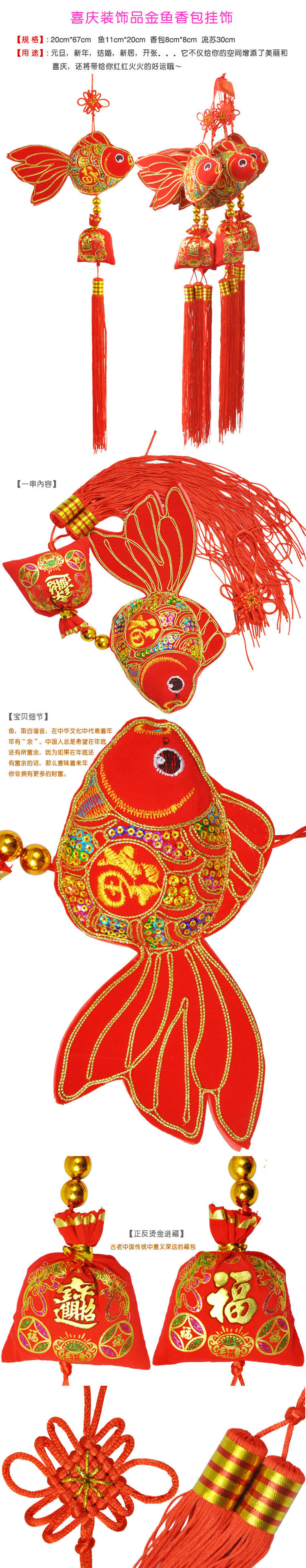 Total length 20 * 67cm, fish 11 * 20cm, sachet 8 * 8cm, 30cm tassel