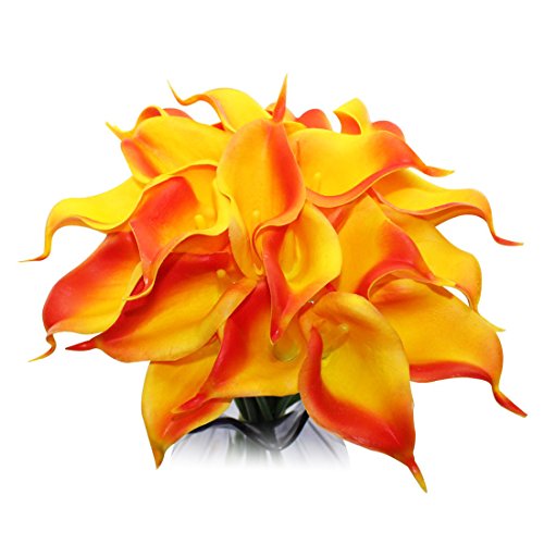 Decora Red and Yellow Latex Real Touch Lovely Artificial Calla Lily Wedding Bouquet Flower Bouquets 10 PCS