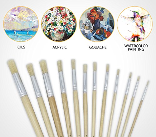 Artist Paint Brushes - Paint Brush Set - 12 pcs Round Paint Brush Art for Oil Painting and Acrylic Painting by Crafts, Long Handle, Natural Brush Paint. Great for Student and Artist