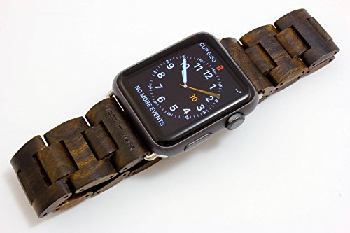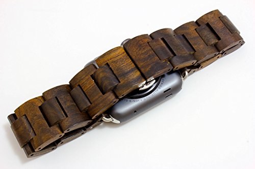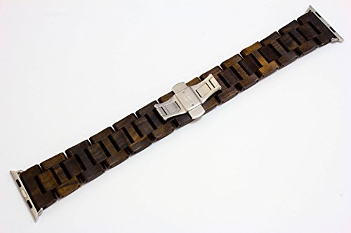 Handcrafted Wooden Band for Apple Watch - Stainless Steel Butterfly Clasp with Adjustable Links - 4 Natural Hardwood Options Men and Women Strap and Bracelet Sizes 38mm 42mm - By Wood Mark