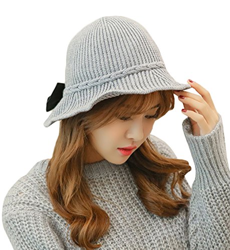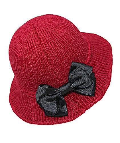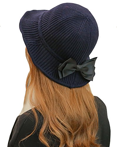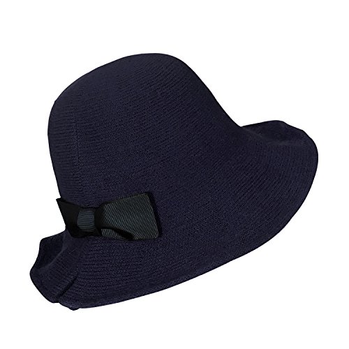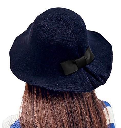 Urban CoCo Women's Wool Blend Foldable Hat Bow Trim Cloche Cap