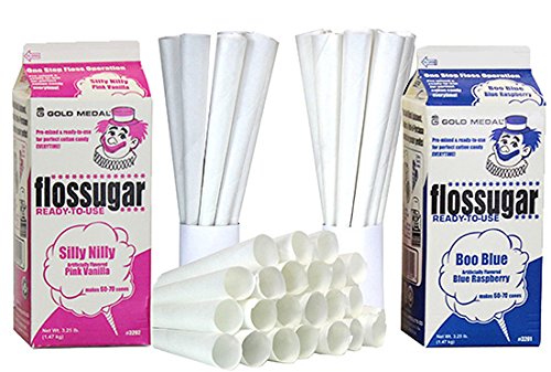 Blue Raspberry and Pink Vanilla Cotton Candy Floss Two Pack (2 Pack W/100 Cones)