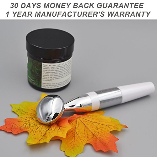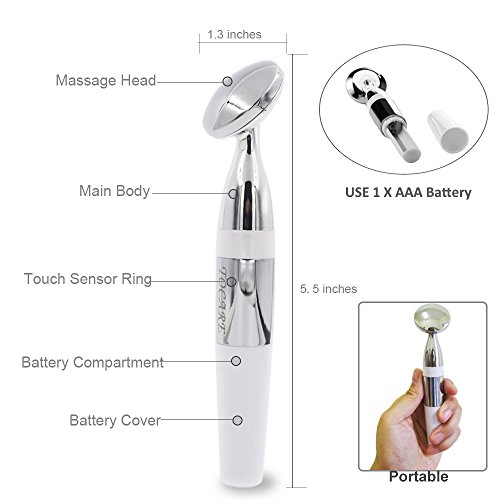 -. Feature : ✔EFFECTIVELY BOOST THE SKIN CARE PRODUCT ABSORPTION. It obviously helps skin absorb the expensive anti-aging or moisturizing gels, creams, serums, lotions and restore smoother fuller skin. / ✔SAY GOODBYE TO WRINKLES and KEEP the elastic and fuller skin. The facial eye massager is a FDA registered medical device.It,which promote the blood circulation, rebuild the collagen and reduce wrinkles, fine lines & age spots with 9000 times per minute high frequency vibration and ion penetration. / ✔JUST 5 MINUTES A DAY to work its magic. The 1.3 inches bigger spherical massage head and constant evenly vibration save much time from the traditional skin care routine,and just 5min/day massage obviously offers the comprehensive care for Face Lift and Wrinkle removal in eye ,face and neck area. / ✔INTELLIGENT AND THOUGHTFUL DESIGN. Smart sensor ON/OFF touch control switch,Spare pouch bag to protect and hold the anti-aging face eye massager,you can carry anywhere and anytime for temple fatigue relief as well. / ✔ OUR PROMISE: 30 DAY MONEY BACK GUARANTEE AND ONE YEAR QUALITY WARRANTY. we really care about your happiness and wellbeing. Hope the sonic face eye massager will be your daily skin care machine.