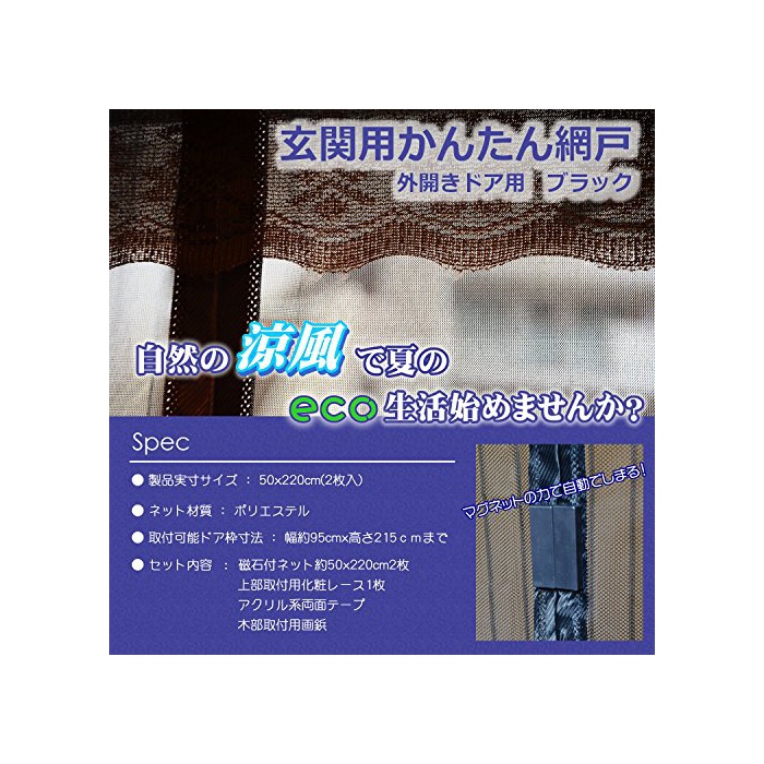 원본상품명:玄用 かんたん網【取り付け簡!爽やかな風を取りんで、蚊などのをシャットアウト!!】 外開きドア用 ブラック