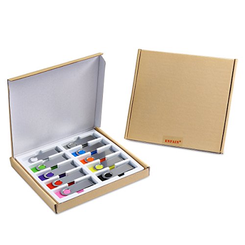 Enfain 8GB USB 2.0 Thumb Flash Memory Jump Pen Drive Disk in a Cardboard Organized Box, 10 Pack, Assorted Color