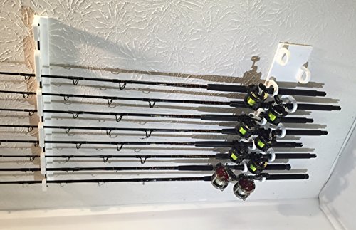 -. Binding : Misc. -. Brand : Reel Rack -. Color : White -. EAN : 0661799891479 -. Feature : 10 Rod Holder -. IsAutographed : 0 -. IsMemorabilia : 0 -. Label : Reel Rack -. LegalDisclaimer : ALL PRODUCTS ARE SOLD UNDER THIS WARRANTY AND DISCLAIMER The user shall determine the suitability of the product for his or her intended use and shall assume all risk and liability in connection therewith; this will include all items sold or distributed by REEL RACK. User is required to read all instruction and follow the manufacturer's guidelines. REEL RACK cannot accept responsibility for injury, and or damage of parts and materials that occurs during the use related to REEL RACK. -. Manufacturer : Reel Rack -. MPN : Ceiling 10 -. PackageQuantity : 1 -. PartNumber : Ceiling 10 -. ProductGroup : Sports -. ProductTypeName : SPORTING_GOODS -. Publisher : Reel Rack -. Studio : Reel Rack -. Title : Ceiling Mount Rod Holder for 10 Big Game Offshore Rods with Staggered Rod Holders -. UPC : 661799891479