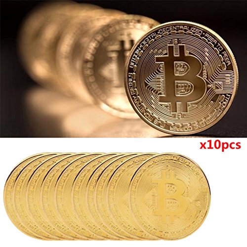 -. Feature : Material: Gold Plated Iron / Bitcoin design, two sides / Souvenir art &collectible,business gift holiday decoration gift / Diameter: 38mm (reference one yuan coin diameter:25mm) / Package includes: 10 x Bitcoin Coin