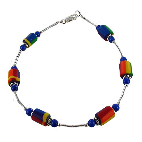 -. Title : Womens Lapis Dolomite, Fimo & Sterling Silver Ladies Beaded Gemstone Anklet with Daisies
