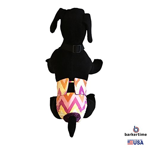 (Barkertime)/Pet Supplies/Litter Housebreaking/DIRECT FROM USA/Dog Diaper Overall - Made in USA - Orange and Yellow Chevron Minky Escape-Proof Washable Dog Di...