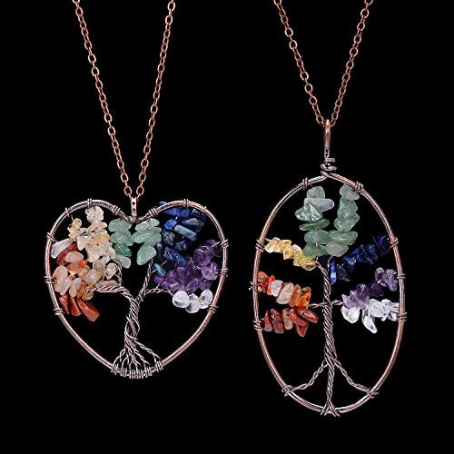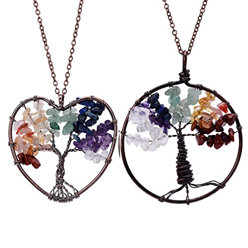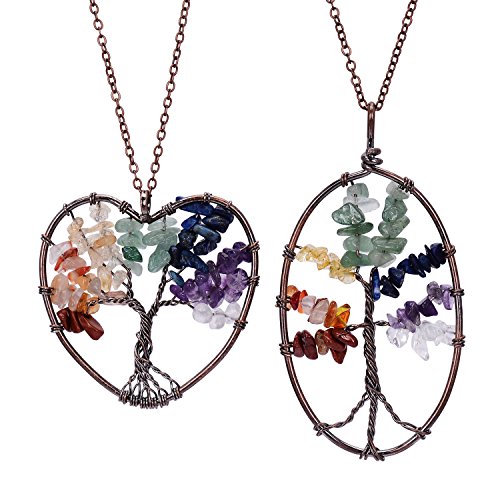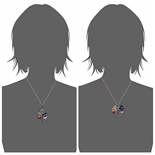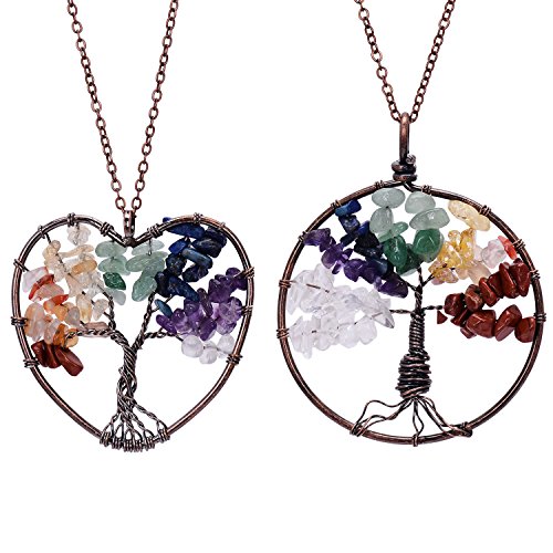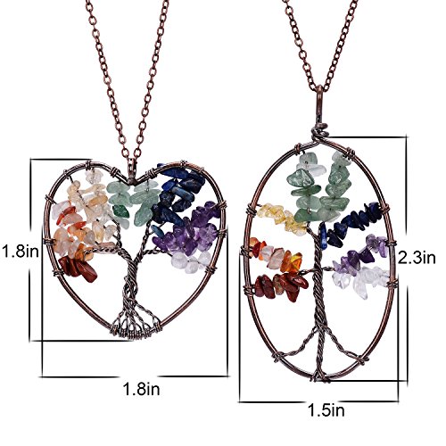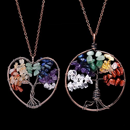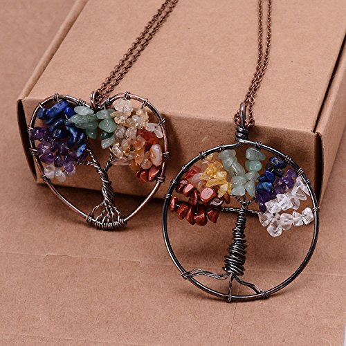 -. Feature : Tree of Life Pendant Necklace.Chain length 45+5cm,weight 47g.Color:Clear,Amethyst,Lapis Lazuli,Green aventurine,Citrine,Red agate.Metal plated in Antique copper. / Come with 2pcs chakra necklace,here is heart shape and round.This is healing jewelry,you can wear it do yoga,good for health,can promote beauty,bring energy. / Wire wrapped necklace attached with non-tarnish chain,metal polished well.Materials are nickel/lead/cadmium free,not allergic. / Each item is fully inspected,all in good quality with affordable P.R.Ice.Come with a black gift bag. / Support 30-day money back or exchange,welcome to contact us for any questions.