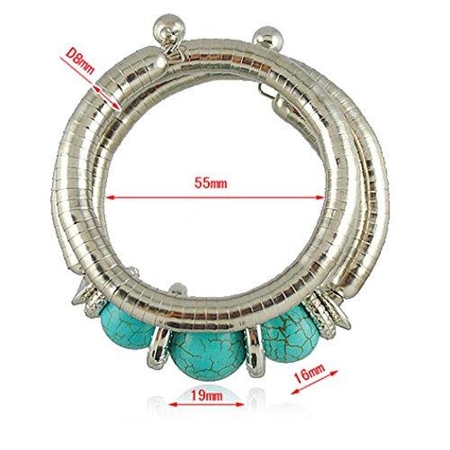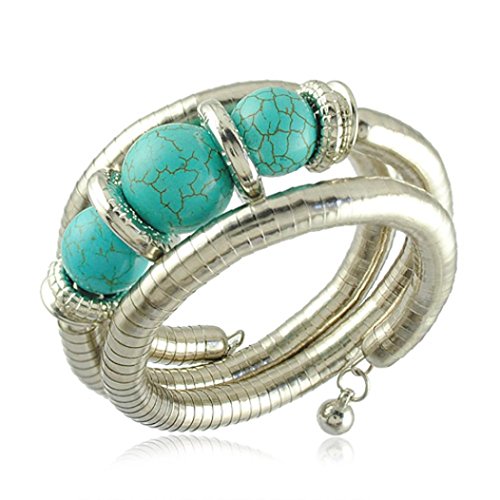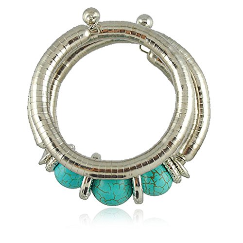 -. Title : Susenstone Round Turquoise Snake Shape Design Silver Tone Bangle Bracelet