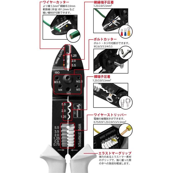 ●ワイヤーストリッパー:電線0.75 0.9 1.25 2.0 3.5 5.5mm