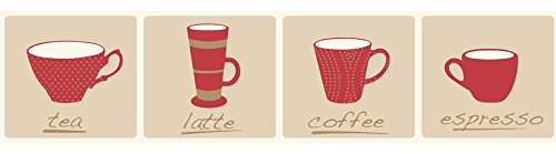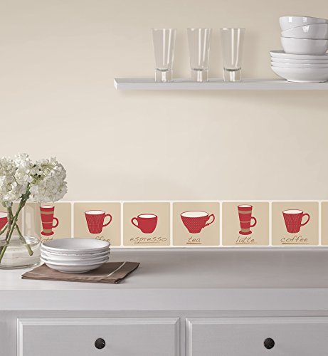 -. Title : Fine Decor FDB50041 Red Tea Cups Peel and Stick Border