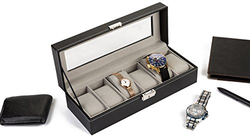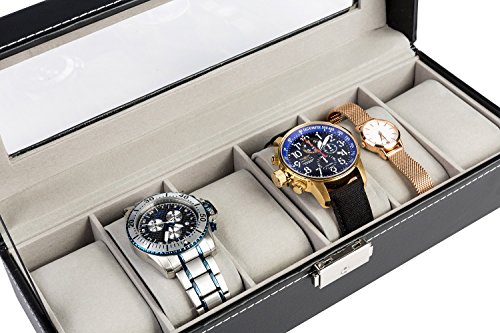 GLASS TOP WATCH BOX: Real glass lid keeps your watches from dust, and offers you an open view of the displayed watches