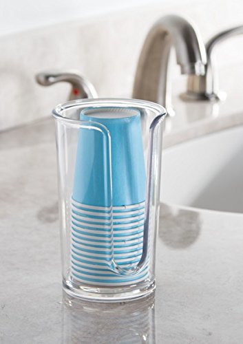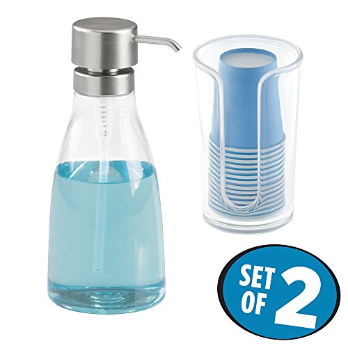 mDesign Bathroom Accessory Set, Mouthwash Dispenser Pump, Cup Dispenser - Set of 2, Clear/Brushed Nickel
