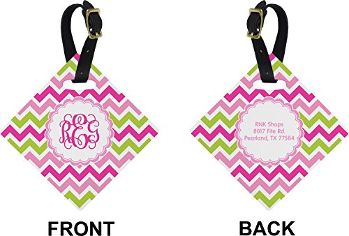 Make traveling stylish when you add one of these diamond shaped luggage tags to your baggage. You can choose from colorful designs that stand out against your luggage and we also have cute youthful designs for children. The luggage tags are diamond shaped and durable with the design printed on both sides. They also include a leather strap with buckle to secure onto luggage handles. About the Design Looking for a girly girl design. This pink and green chevron print with a scalloped label and an interlocking monogram is as girly as it gets. We have created this chevron pattern in lime green, orchid pink and hot pink. For all of us girly girls and princesses, this is our design choice! As always with all our designs, you have the option of customizing your label and personalization. Add a ribbon if you like in hot pink or maybe orchid pink - you decide. Have fun making it your very own design! Not exactly what you are looking for? We have over 300 design to choose from and over 45 standard color choices! So browse around as you are sure to find something you like. 1 |