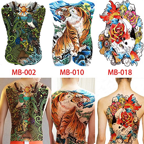 3 Pieces full back tattoo sticker in package, including one of each MB-002, MB-010 and MB-018 as picture.