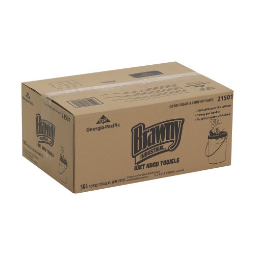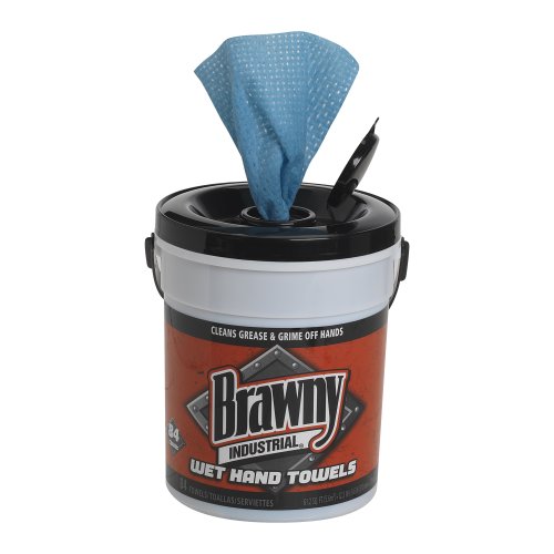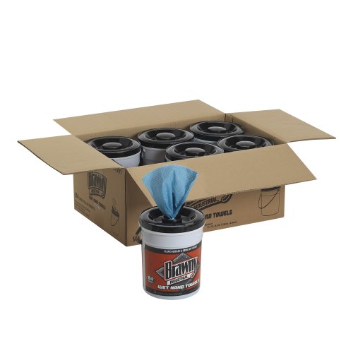 Brawny Industrial 21501 Wet Hand Towels, 12 1/5" x 8 3/5", 1-Ply, Blue, 84 Towels per Pail (Case of 6)