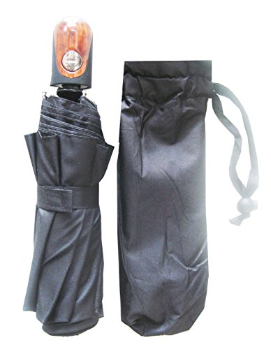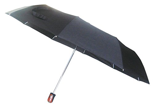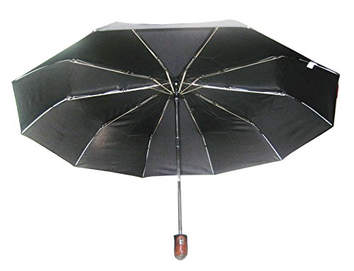 Product Description This is automatic open close super mini folding umbrella. This umbrella folds into 10" long, automatic opens to 43" wide. All my competitors sells 8 ribs for $20.99. I sell 10 ribs for cheap. More ribs means the umbrella holds wind better. It adds enforcement against wind. The tips of the frame are made of fiber glass, so it would adds more life years to the umbrella. 0
