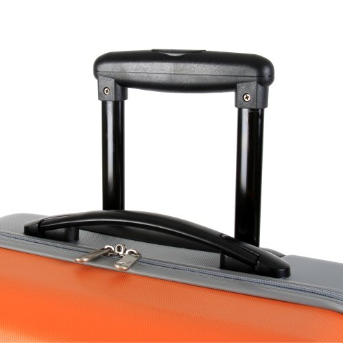 - Feature : Abs and hard side outer shell / 4 wheel spinner system for easy maneuverability / Telescoping trolley handles are receded and feature a push-button locking system / Fully line interior with two inner mesh pockets and valet straps for convenience / Top and side carry handles for easy transportability