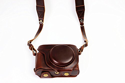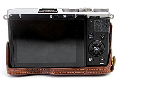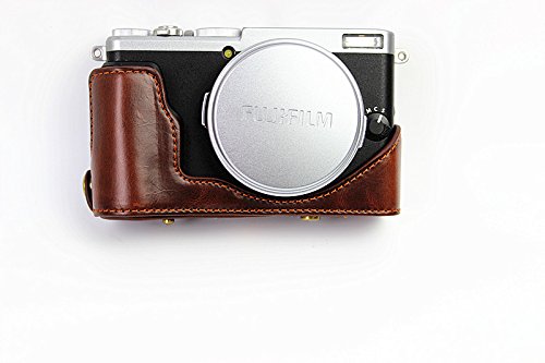 Full Protection Bottom Opening Version Protective PU Leather Camera Case Bag with Tripod Design Compatible For FUJIFILM Fuji X Series X70 with Shoulder Neck Strap Belt Dark Brown