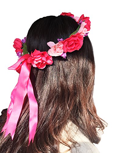 Product Description MATERIAL: Fabric flowers, ribbon SIZE: Diameter: about 16.5cm/6.49 inch, adjustable size with ribbon Beautiful flower hairband with matching flower wrist bracelet definitely makes you look more charming and eye-catching 0