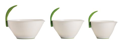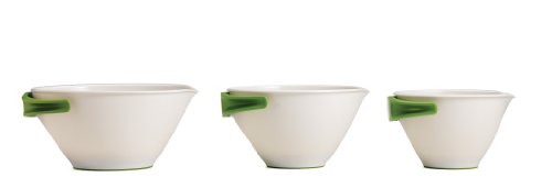 - Pop up the natural-hold handles on the 2, 3 and 4-quart size bowls to grip and pour a steady stream of wet or powdered ingredients.
