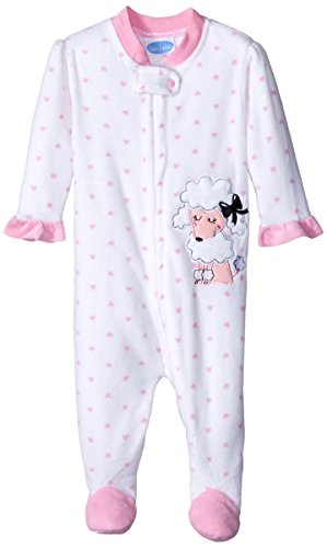 Super soft micro-fleece zip-front footed coverall with embroidered applique and protective zipper cover at neck
