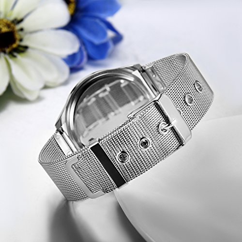 -. Feature : Ultra thin dial stainless steel strap quartz wrist watch, Light weight and comfortable to wear / Quartz movement, keep precise time / A top fashion accessory, Alloy case and stainless steel mesh strap, strong and sturdy in structure, / It is an Amazing gift for men and your boyfriend as Men's Birthday, Anniversary, Business. / Daily water resistant: withstands rain and splashes of water, but not for Diving Swimming or Hot Water.