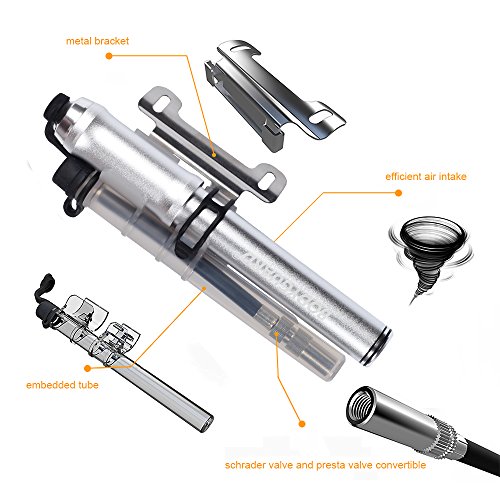 HIGH QUALITY - DURABLE, COMPACT & LIGHTWEIGHT bicycle tire pump. The bike pump is made of 6010 aluminum alloy, 7.7 inches long and weighing in at only 5.6oz, the bike frame can be mounted next to the bottle holder, or put it in your backpack, very convenient .