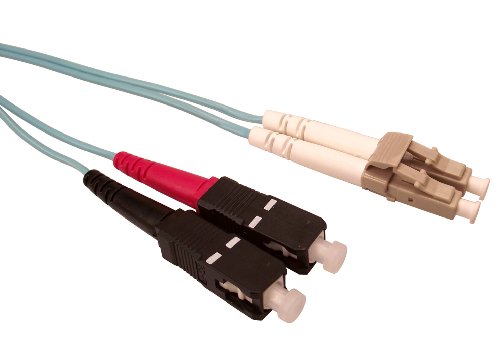 Shaxon FCSCLCQ05M, SC to LC Duplex Multimode 50/125 10 Gigabit Fiber Optic Patch Cord - Aqua PVC Zip Cord, 5 Meters