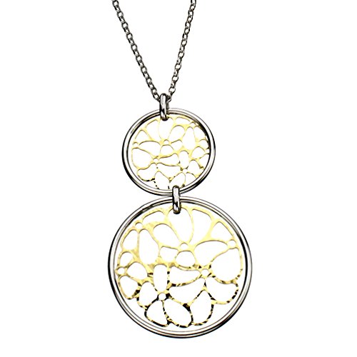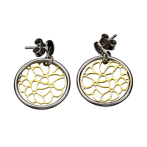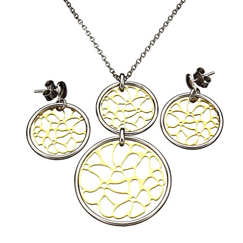 -. Feature : 18k gold-flashed sterling silver laser cut flowers / Shiny rings hang from a bail hallmarked 925 / Solid 925 sterling silver, imported directly from Italy / Matching earrings, post, ear nut hallmarked 925 ITALY / Rhodium-flashed sterling silver for stainless steel appearance