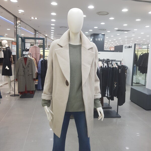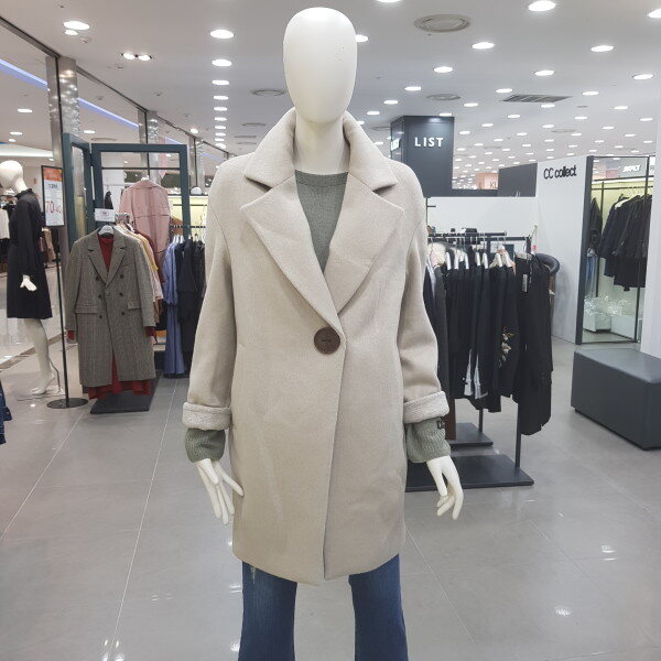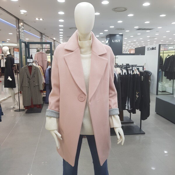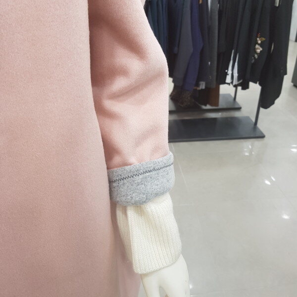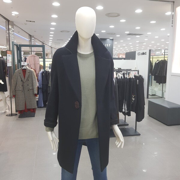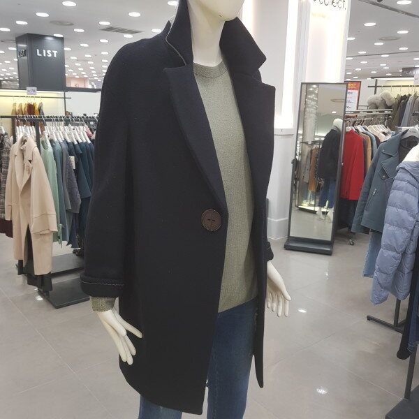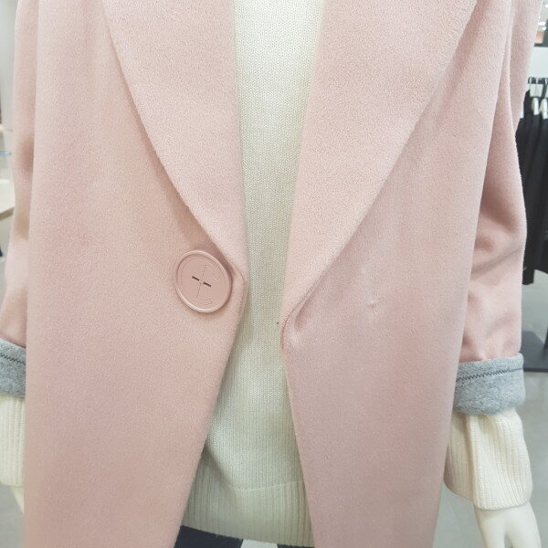 브랜드로고 왕버튼 코트예요. 소매도 배색스타일이린 귀여우며 여성스러워요