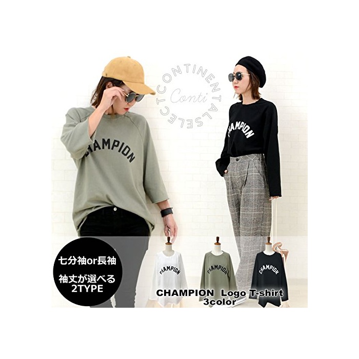 원본상품명: (コンチネンタル) continental カットオフCHAMPIONロゴ長袖Tシャツ&七分袖ラグランTシャツ ホワイト/カキ/ブラック3色展開