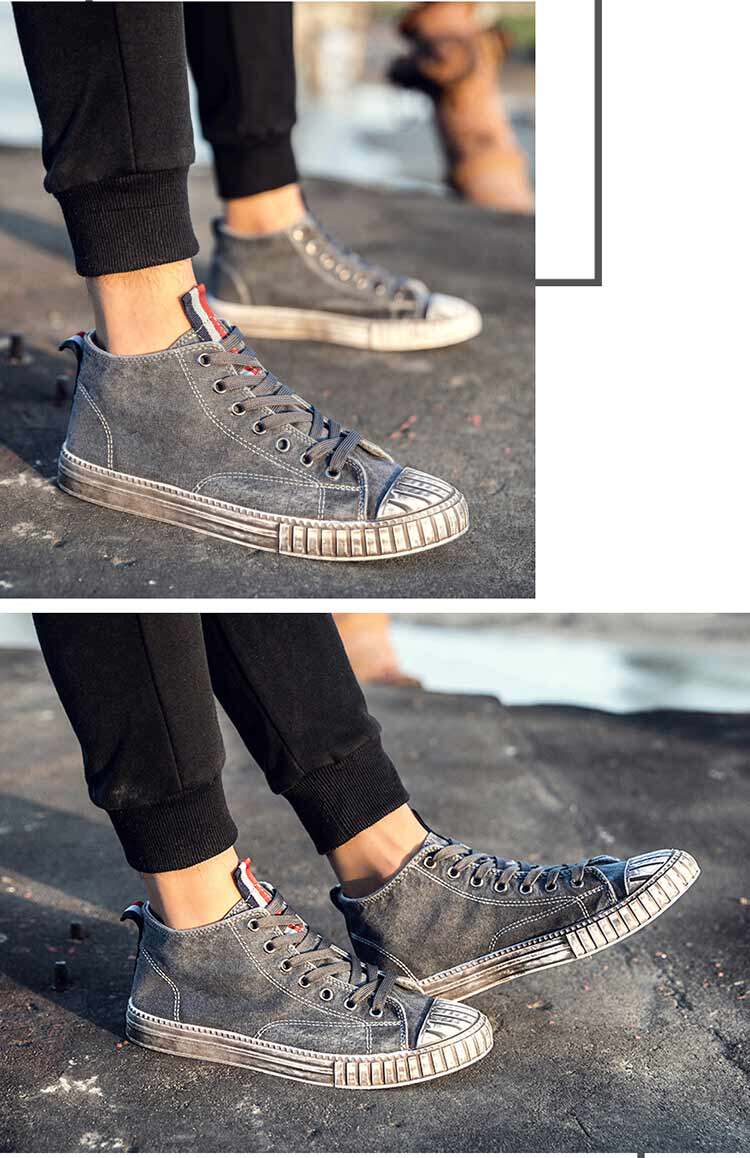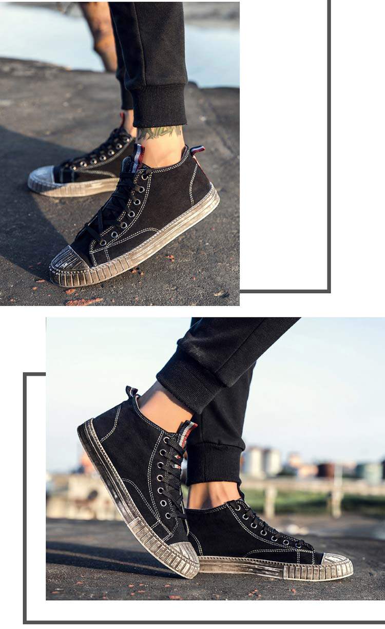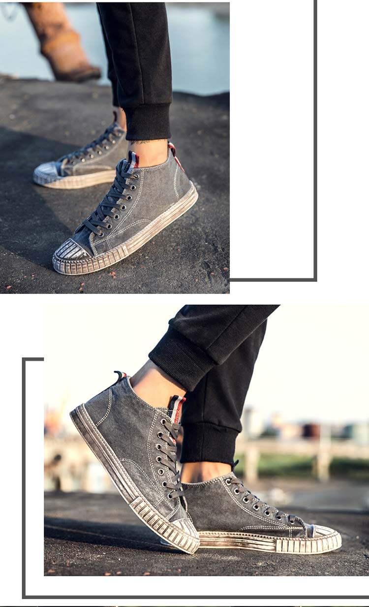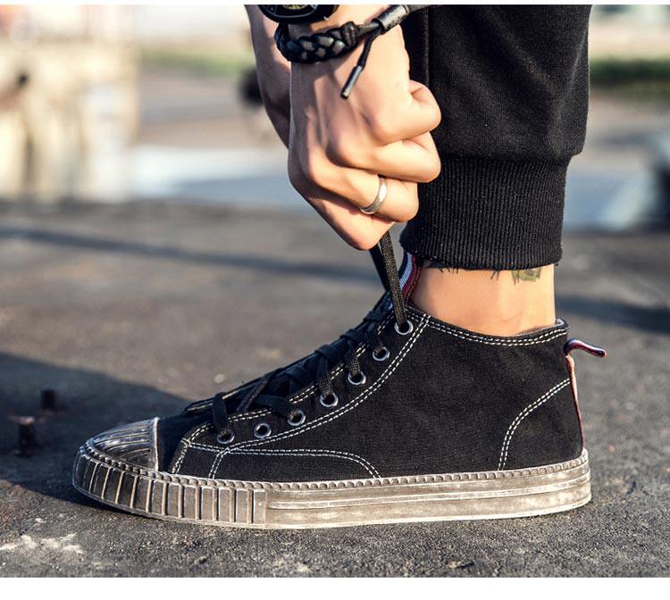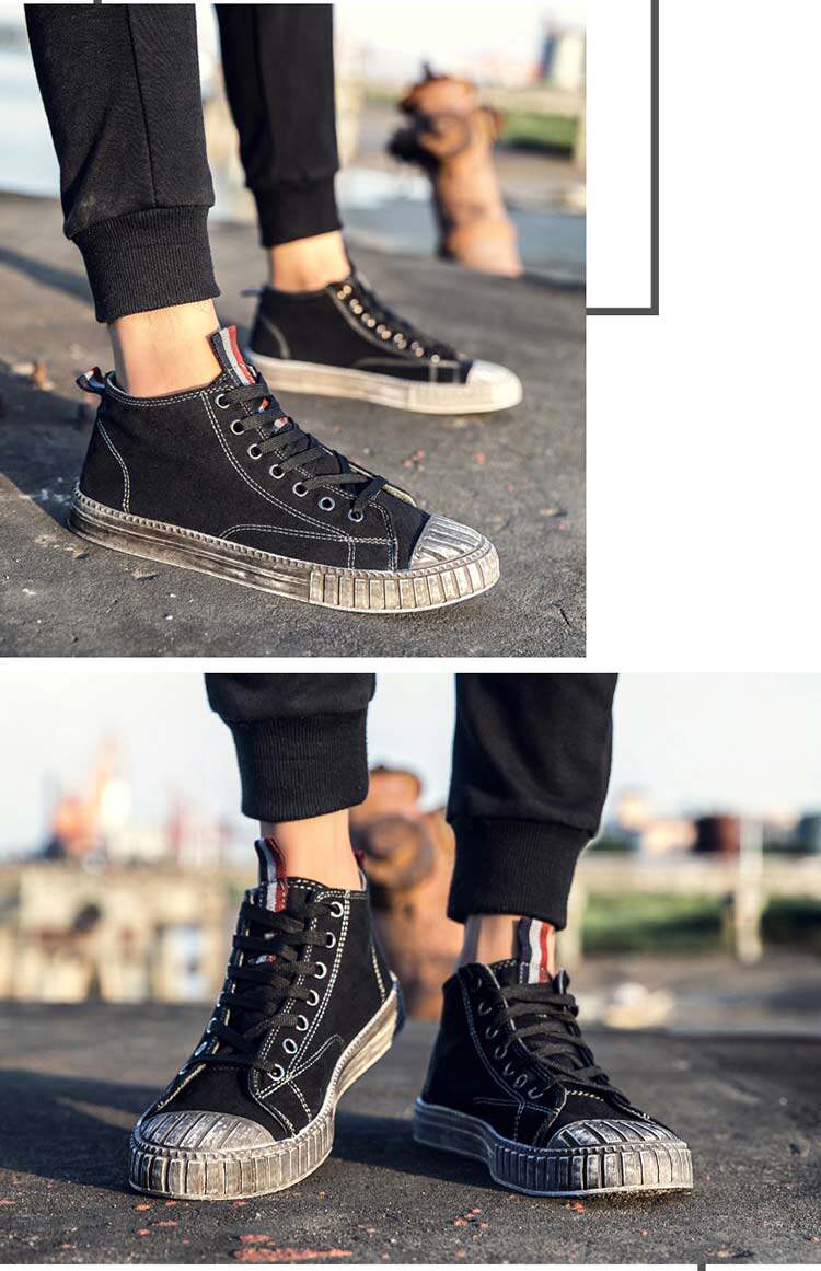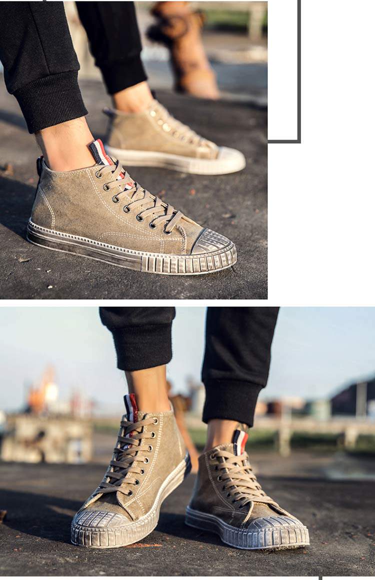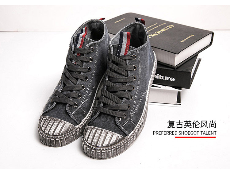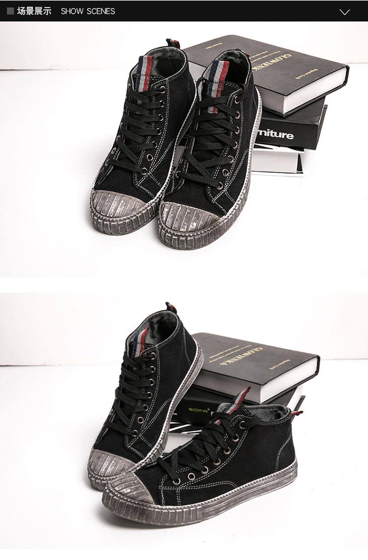 秋冬男鞋子韩版运动休闲鞋百搭潮流高帮帆布鞋港仔复古潮鞋男板鞋