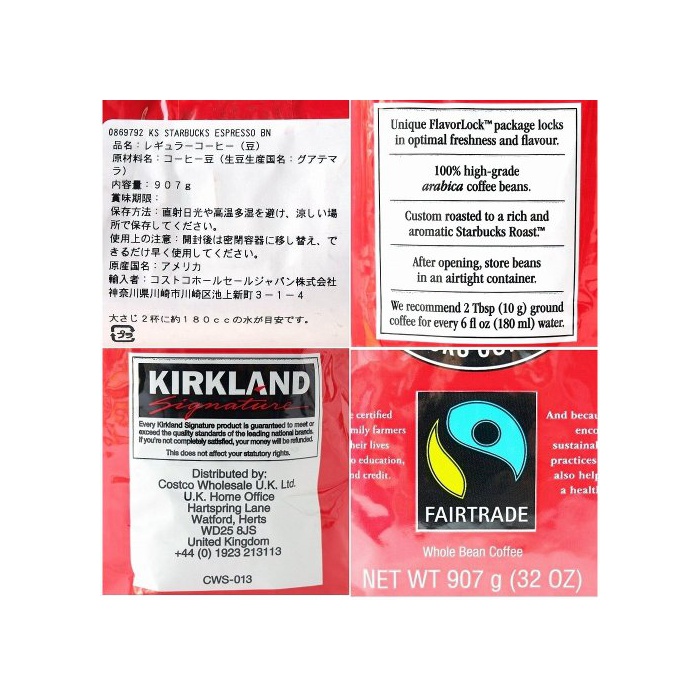 원본상품명:Kirkland スタバックス ロストエスプレッソコヒ(豆) 907g