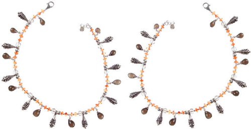 -. Title : Smoky Quartz and Carnelian Anklets (P.R.Ice Per Pair) - Sterling Silver