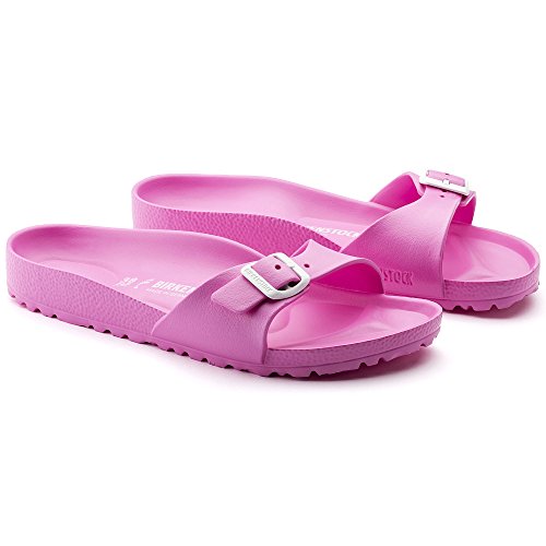 Product DescriptionBrand: Birkenstock. Model: Madrid EVA. Typ: Synthetic-Sandals. Color: Neon Pink. Buckles: Regular Buckle. Material: EVA complete0