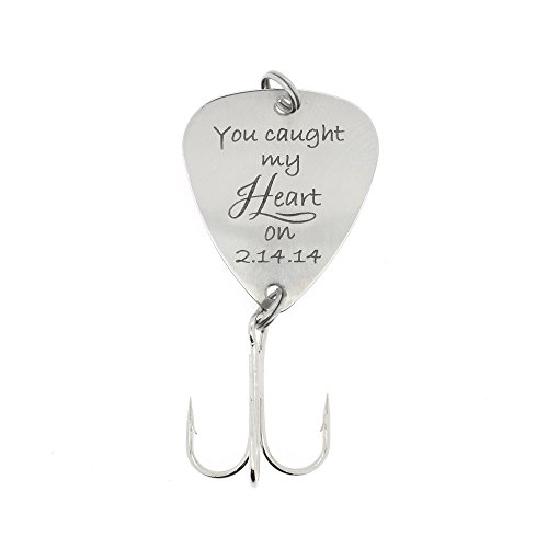 -. Title : Monogrammed Personalized Hook Fishing Lure- "You caught My Heart on" with your Special Date