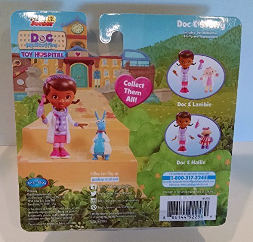 Doc McStuffins Toy Hospital Doc and Stuffy the Dragon toy figure set with accessories. This set includes Doc (with removable stethoscope), Stuffy in a white lab coat and scrubs, and medical tool. Doc McStuffins is 3.5 inches tall and Stuffy is about 2 inches tall.Feature
