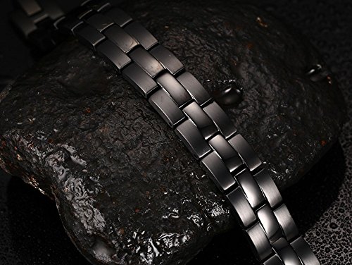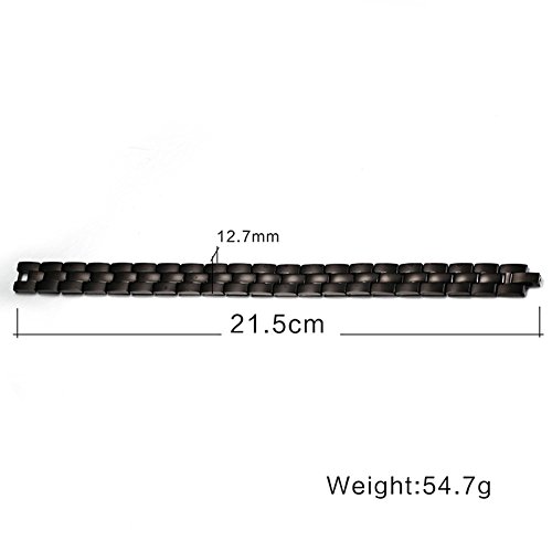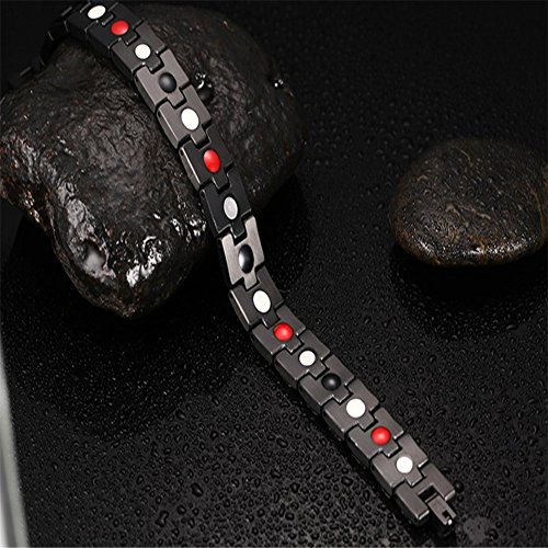 -. Feature : "Product Details" --- Material:stainless steel,suitable for skin;Length:21.5cm;Healthy element:magnet & germanium & negative ion & infrared / "Design" --- 18k black plated with magnetic stone,floder clasp,powerful healthy link magnetic bracelet / "Gift and collection" --- Best collection and gift choose for family husband dad father boyfriend,show your healthy life / "Package" --- Come with a high quality OPP Bag,Package in well / "Warranty" --- 30-Day Money Back Guarantee or Exchange