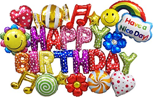 -. Feature : お誕生日のお祝いには欠かせない豪華な飾り付けバルーンのセットです! / 必須の「HAPPY BIRTHDAY」の文字風船に加え、合計9種類、全13個にも及ぶカラフルな装飾が盛り沢山のセットです! / お友達を招いた大規模なパーティーでも、家族だけのコンパクトなお祝いでもこれ一つで豪華飾り付けが完成します! / お部屋をカラフルに彩る風船なので、簡単にパーティーの雰囲気を作り出せます! / 幅230cm×高さ140cmにもなる大ボリュームの飾りつけをお楽しみください!