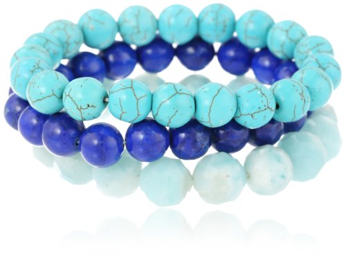 3 Piece Amazonite, Reconstituted Turquoise and Dyed Blue Stone Stretch Bracelet Set, 7.5"
