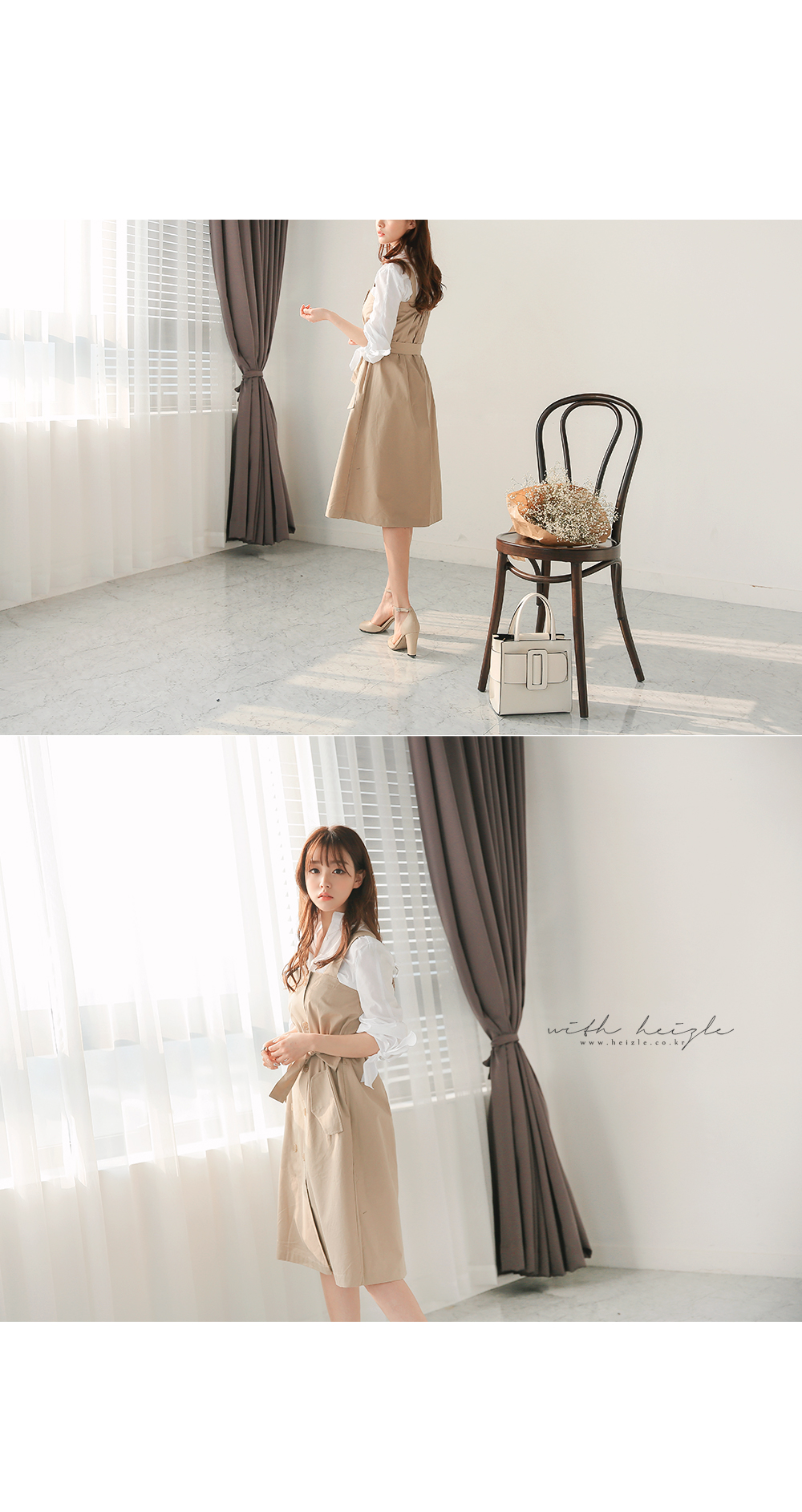 단품으로 입어도 여성스러움이 느껴지고 뷔스티에탑이나