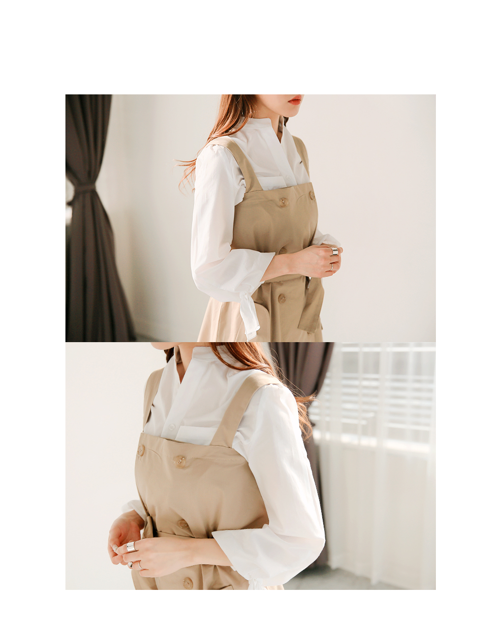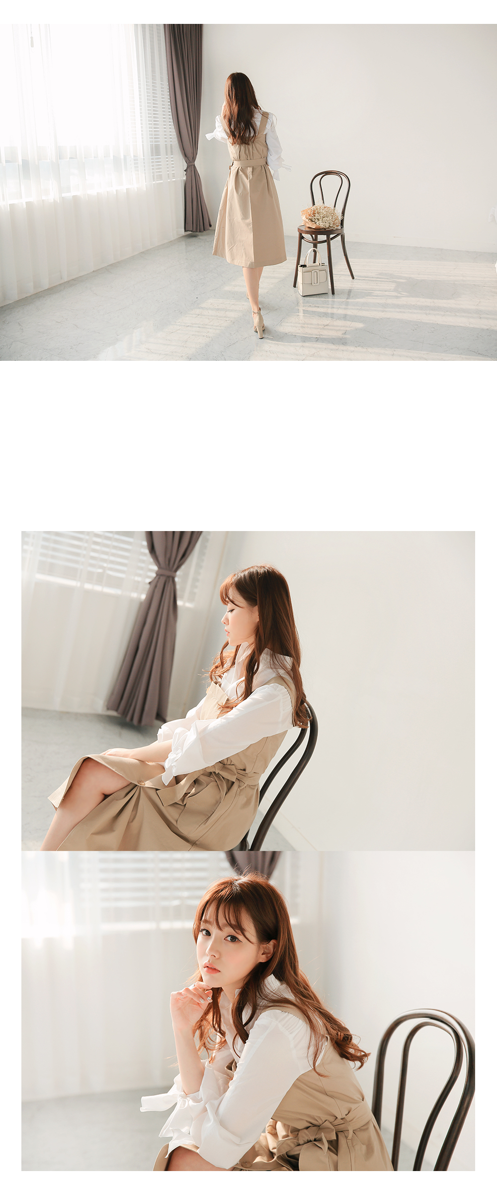 슬림한 핏은 기본이고 와이드한 소매통에 리본끈으로