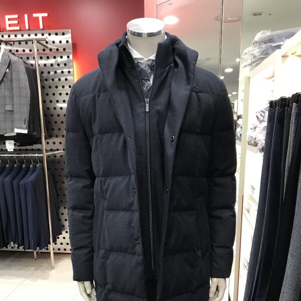 울소재 다운 충전재 코트로 보온성을 더하기위해 앞여임쪽 니트여임이 탈부착디자인으로 되어있습니다.겉 퀼팅선이 없어서 모던한 연출이 가능한 패딩코트입니다.