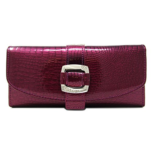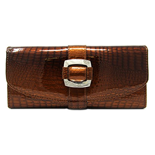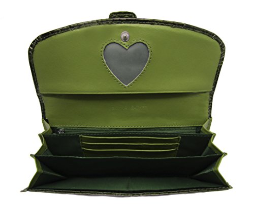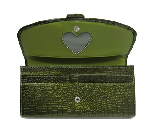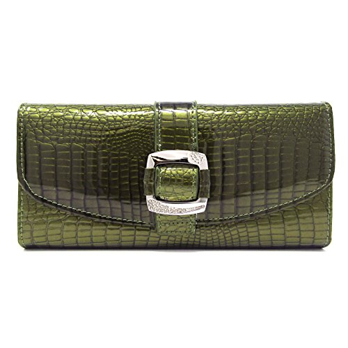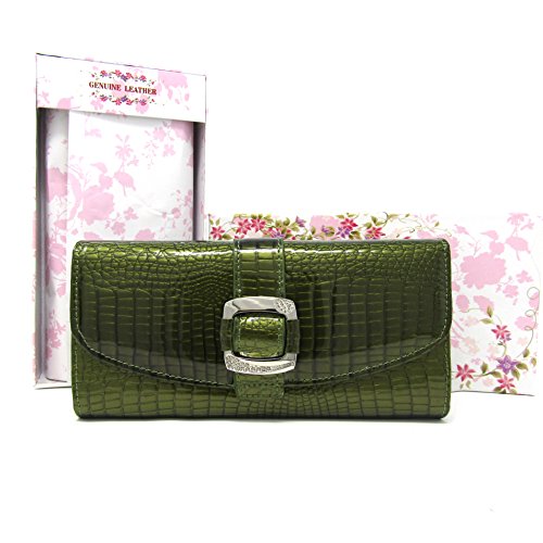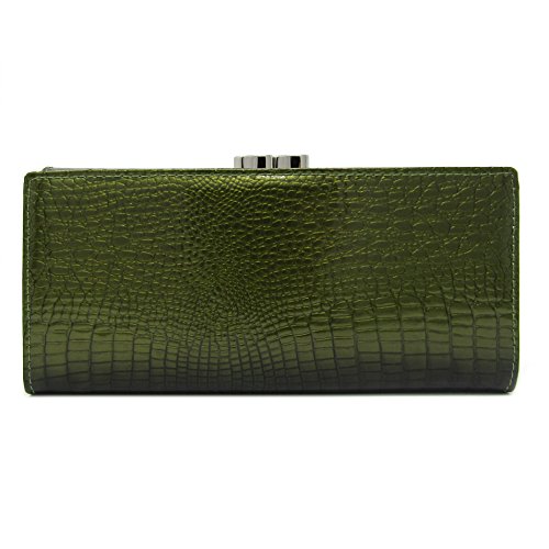Solene Women's Premium Genuine Leather Slim Clutch Long Purse Bi-Fold Checkbook And Cards Holder & Coins Organizer Snap Tab Closure Wallet (Olive)